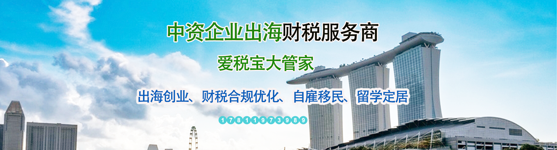 我们专注于服务中资企业出海的财税合规及节税服务,帮助中国企业出海新加坡、香港、日本提供公司注册、财税合规优化、移民留学等服务,帮助您开拓海外市场。咨询:17811973989